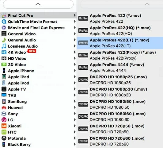 1) Choose a preset. This Mac DVD Ripper includes handy presets that make things easier. Click the "Profile" drop-down menu and this will bring you panel where you'll find a lot format options under Final Cut Pro category. Simply choose one of them as your output format, the most appropriated ripping settings will be prepared for you.