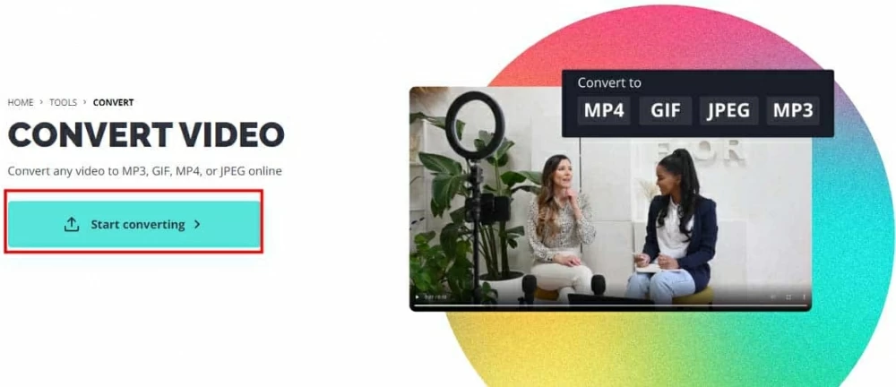 Step 1. Go to the official site and click on Start converting. The webpage will turn to the edit screen for you to convert AVI to MP4.