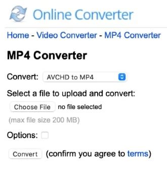 Online Converter is a simple yet effective tool for converting AVCHD to MP4 for Mac users. There is no fancy interface to make Online Converter feel modern and high-tech, but it is nonetheless appropriate for the task by opting for a plain text browser-based user interface.