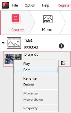 Alternatively, you can right-click on the imported video, and then select Edit option from the pop-up menu; or just click the edit icon the far right side of the video thumbnail.