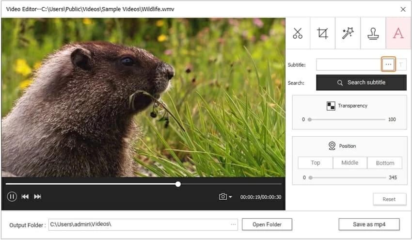 1. Add local subtitle: Click ... to browse your local subtitle files (.srt/.ass/.ssa) from computer.