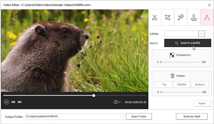 2. Search subtitle online: Hit the "Search subtitle" button to download subtitles online.