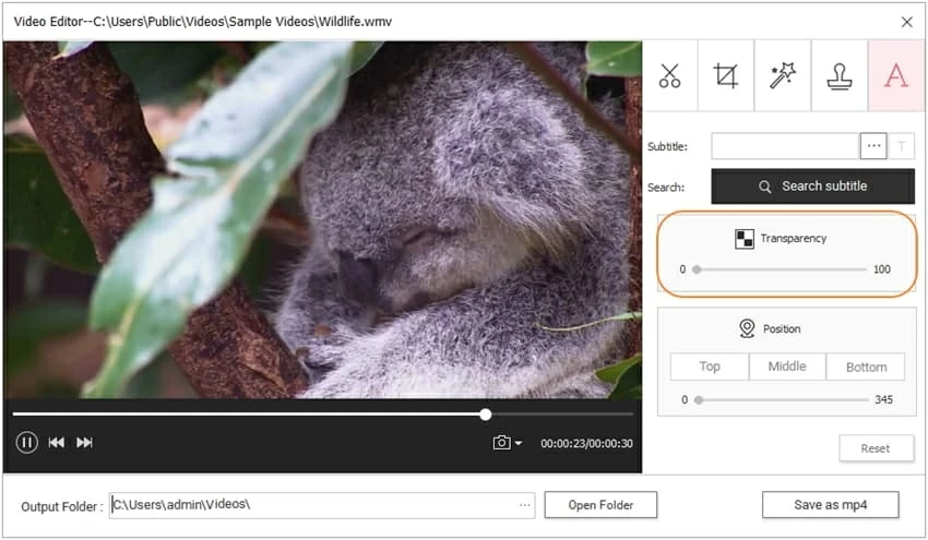 Then adjust the subtitle transparency as the screenshot shows.