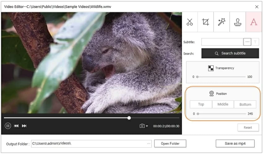 You can then change the subtitle position by making it Top, Middle or Bottom.