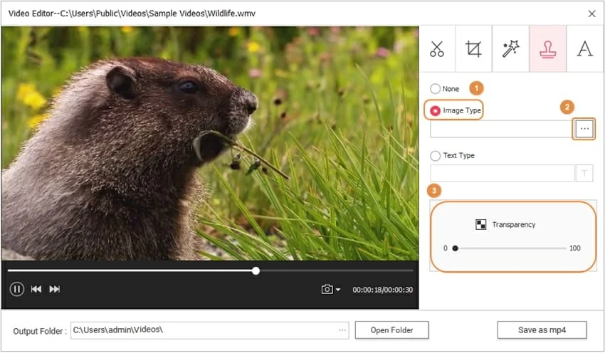 Switch to the fourth watermark icon to add watermark to video. Both image and text are supported.