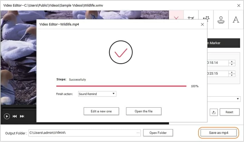 When you're satisfied with above video editing, hit Save as mp4 in the bottom right to save above changes.