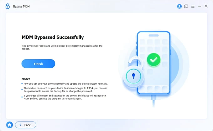 When everything is ready, click Continue and let the program help you removing Mobile Device Management (MDM) lock on the iPhone or iPad.