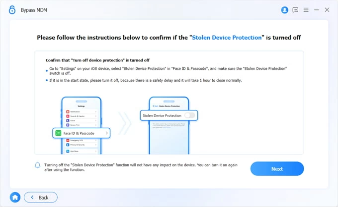 In this stage, you will want to turn off "Stolen Device Protection" option in your device: Settings > Face ID & Passcode, ensure the Stolen Device Protection option is disabled.