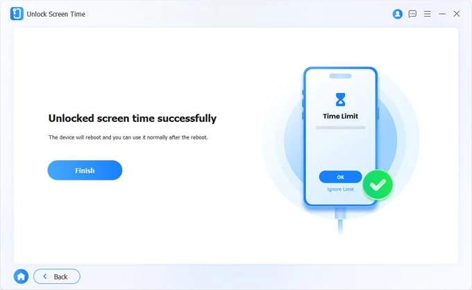 When you're ready, press Continue and you're good to go. The software will reset the passcode of Screen Time instantly.