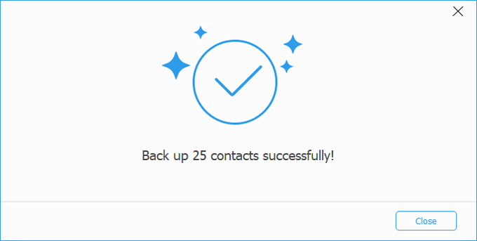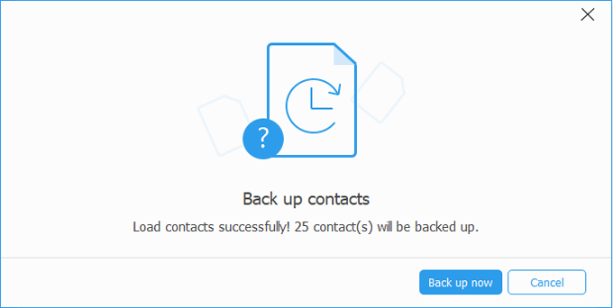 3. Click "Back up now" button to begin making a backup of your contacts. When it completes, you will get a "Back up [numbers" contacts successfully!" message on the screen.
