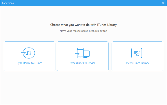 This feature allows you to rebuilt your iTunes library by syncing device to iTunes, or sync your iTunes library to device. You can also get a quick access to your iTunes library.