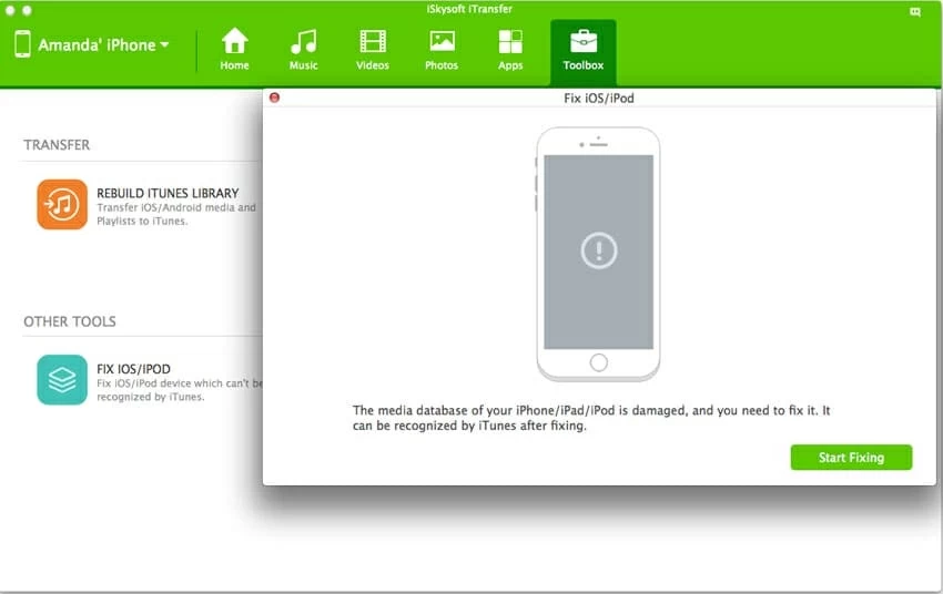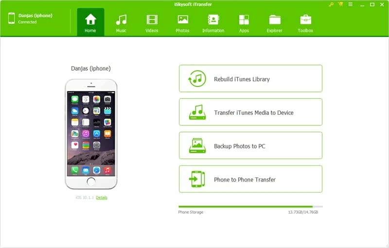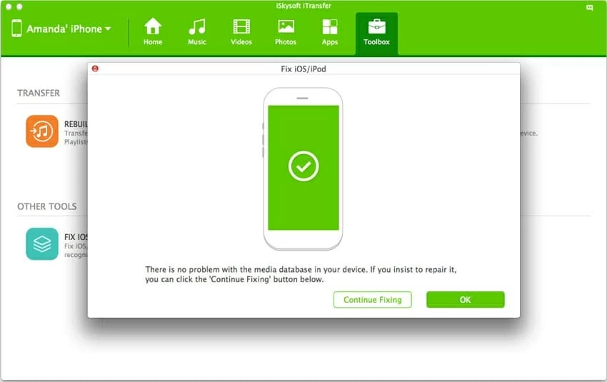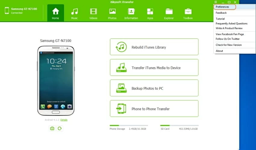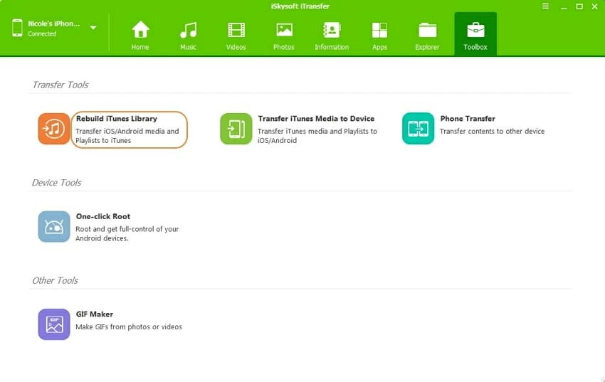 There are three tools available: "Rebuild iTunes Library", "Transfer iTunes Media to Device", "Phone Transfer". Since we've covered these 3 tools in the previous article, you can refer to Shortcuts: one-click to Transfer to get more information.