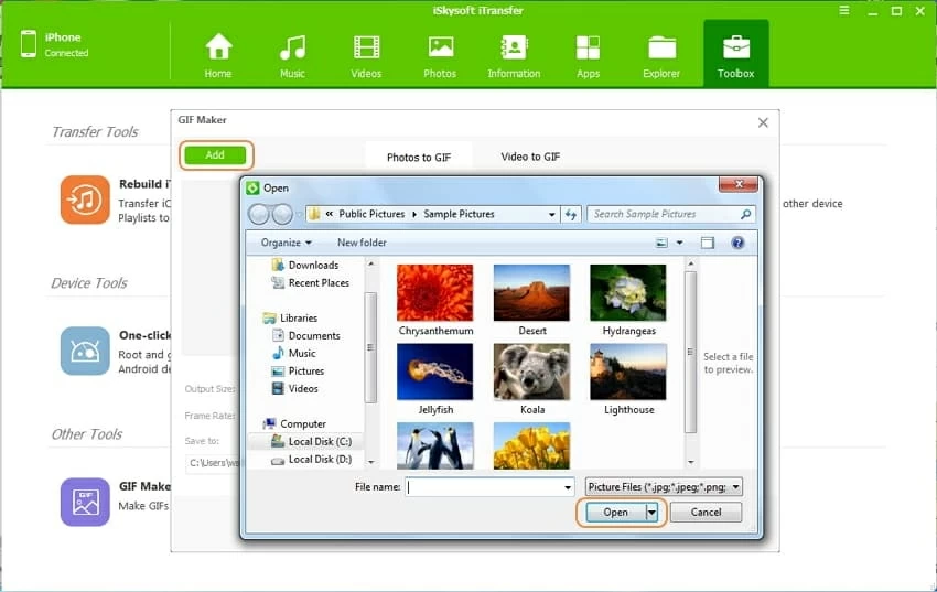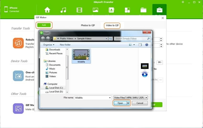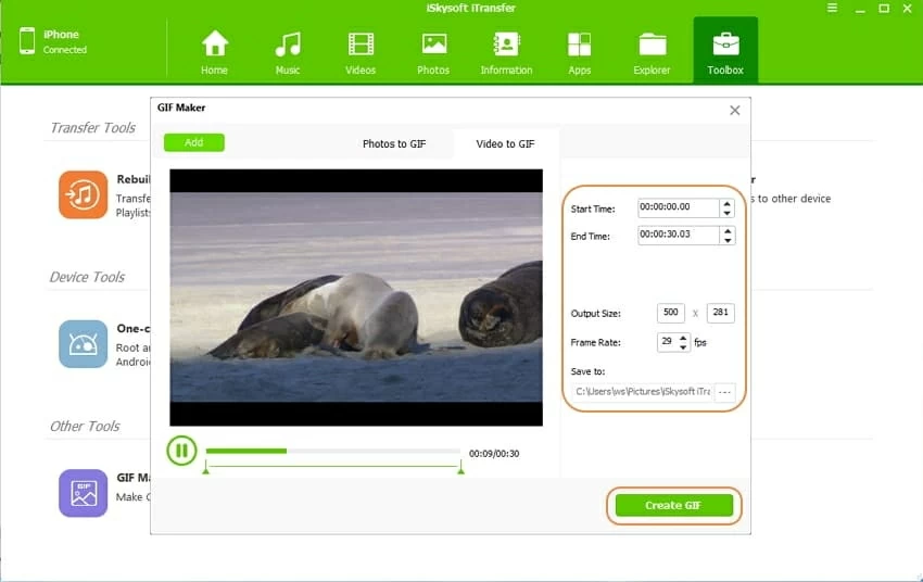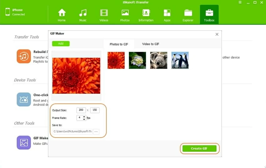 GIF Maker: it converts Photos/Videos from your local computer to GIF file(s), you don't need to connect any iOS & Android devices with your computer for this feature, but you need to install a program which enables you to view GIF pictures.
