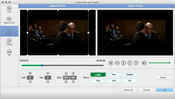 Crop: Click on "Crop" option then you are able to remove the unwanted part by dragging the dot frame over the video, or set value in Left, Top and Cropped Size.