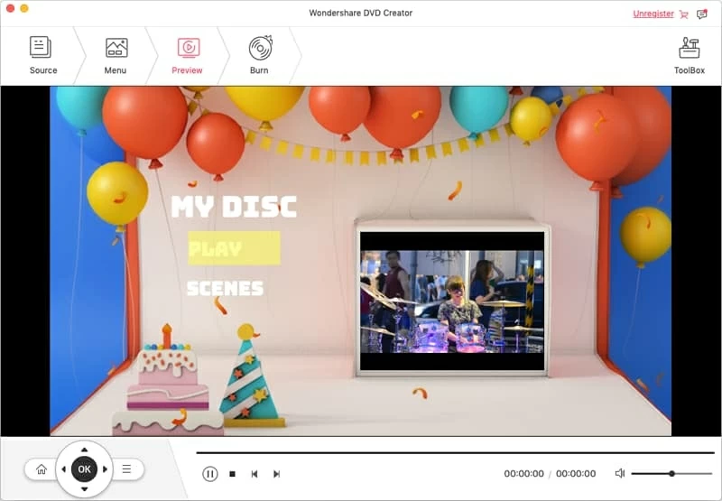 After finishing all the editing, click the "Preview" tab to preview your DVD project.