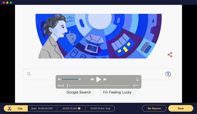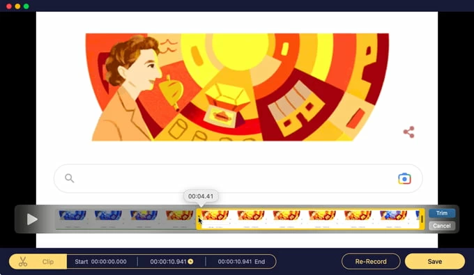 When you're done with your recording, the video will appear in a simple editor, where you can preview and trim it to suit your needs.