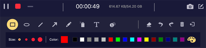 Another nice touch is this application's Annotation option. By clicking on the Edit icon on the right side of the float bar, you can add annotations during the recording. arrows, shapes, texts, callouts are all supported.