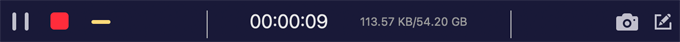 When it's recording, it displays a dashed box that indicates the recording area and places a float bar under it. With the bar, you can click the Pause button to temporarily stop recording, resume it, and capture snapshots.