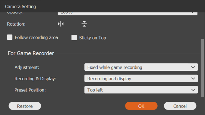 Preset Position: the default location for the picture-in-picture screen in your final recording.