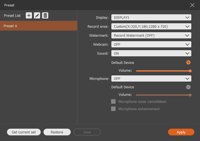 If you frequently use the same video dimensions or recording settings, it's a good idea to create a preset for future use, which saves you a lot of time.