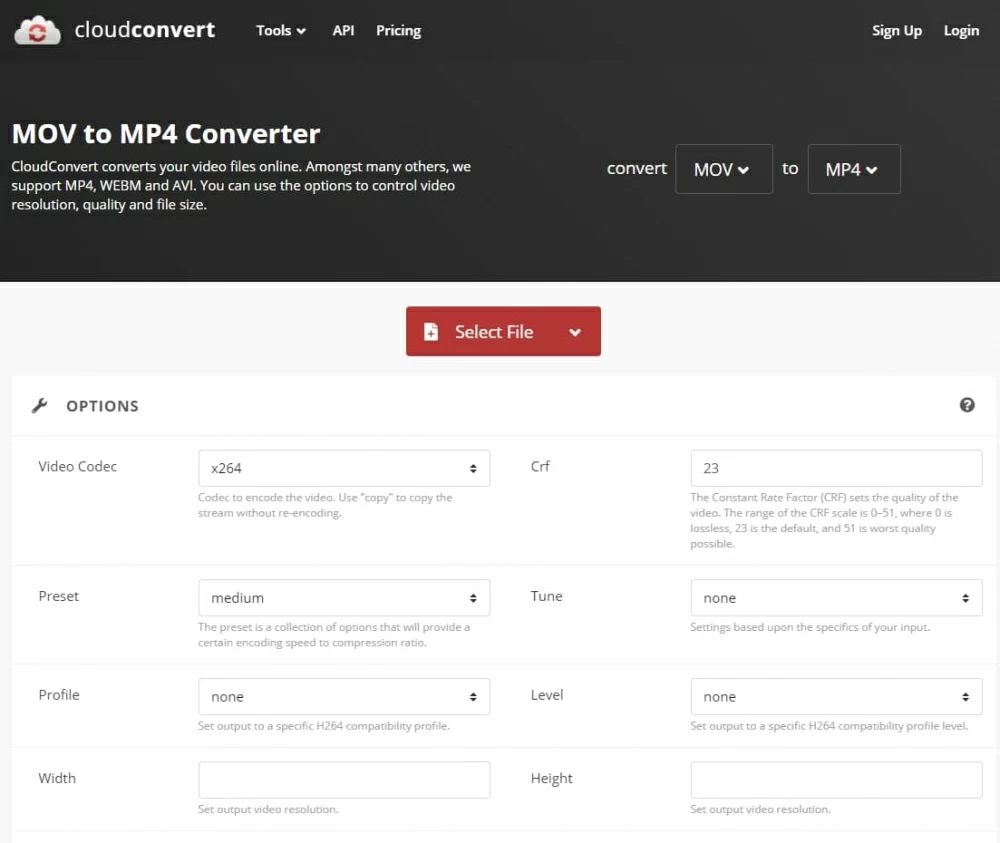 If converting a MOV to a MP4 on Mac or Windows computer locally is not the way you like, you can go after a free online service to get the job done instead. CloudConvert is one of the most well-rounded online file converter out there. It can converts literally more than 200 different file formats — most importantly in our case, MOV to MP4. CloudConvert has a very simple and clean interface, and best of all, it's free!