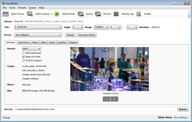 Available for Mac, Windows and Linux, Handbrake is an open-source and free video converter software program with many advanced features. It can convert pretty much any video file you can dream of—you will convert a MOV movie to a MP4 video easily on Mac or PC's with Handbrake, as well as DVD or Blu-ray disc that don't contain any kind of protections. It also includes some advanced options in the menu items to fine-tune the video encoding settings, choose device-oriented presets, and edit the video.