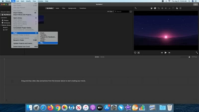Let's start with the easiest, simplest way: use Apple's iMovie to convert MOV files into MP4 on Mac for free. The proprietary video-editing software includes a Share option to save your video as *.mp4 (H.264, MPEG-4) format that is suitable for the device you wish to view on.