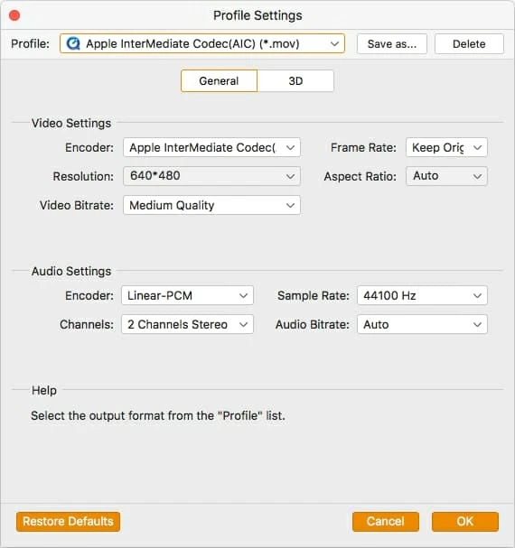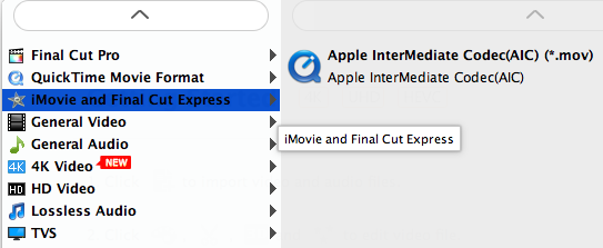 Click "Profile" drop-down box, and then choose Apple InterMediate Codec(AIC) (*.mov) under "iMovie and Final Cut Express" category.