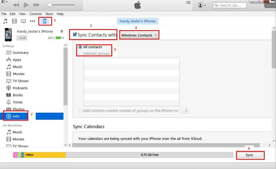 Apple's iTunes is also a great way to transfer your iPhone contacts to an account associated with Sony Xperia phone. You can choose an account besides Google, such as Windows or Outlook.