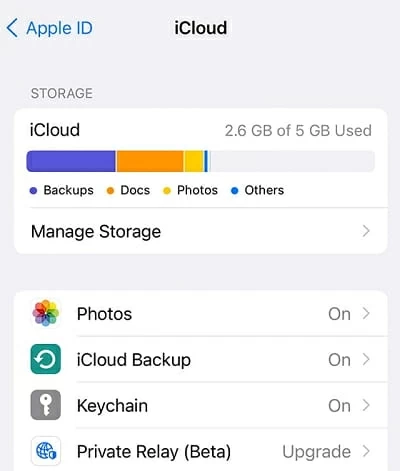 Step 2: You will see the app list. Toggle on the apps you want and let iCloud sync the data. Be aware that all you have got for free is 5 GB cloud storage. If that's not enough for you, you can upgrade to iCloud + for paid service monthly.