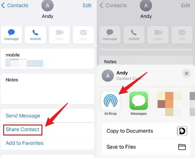 Another way for people who want to wirelessly transfer contacts from iPhone to iPhone without iCloud is to take the help of AirDrop. To attain this, you need to put both your old and new iPhones in one room. Then enable the AirDrop feature on the two iPhone devices. Although it is one of the fastest ways to transfer contacts, it is only suitable for a handful of contacts that need to be moved. Here's how you can move your iPhone contacts: