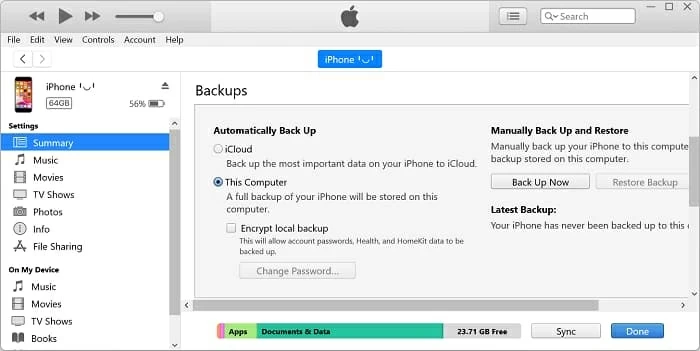 In this method, you can create your iPhone's backup to iTunes first. And later restore it to your new iPhone. However, this method can only work when both your iPhone devices have the same iOS versions. Here's how to do it: