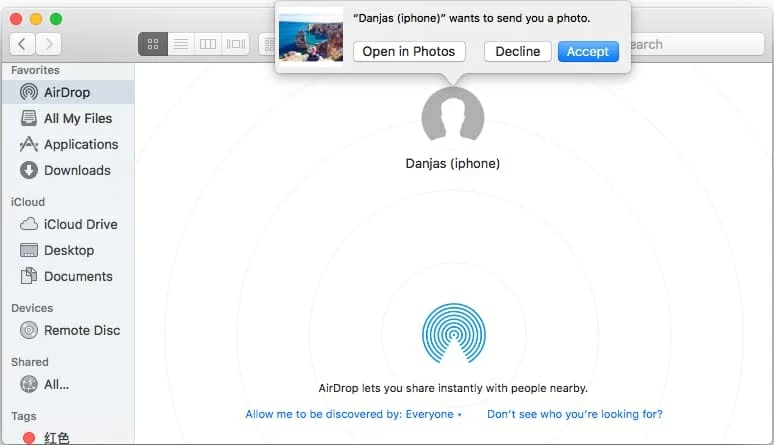 Open a Finder window on your Mac and select AirDrop in the sidebar or go to menu bar and click on Go > AirDrop. Then in the AirDrop window, choose Allow me to be discovered by Everyone, or Allow me to be discovered by Contact Only. To raise your chances of your iPhone seeing your Mac and vice versa we suggest selecting Everyone option.