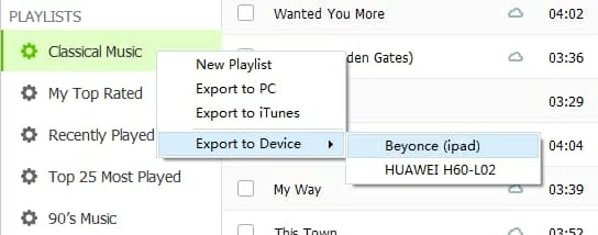 That's all there is to transfer your iPod music. If you need to transfer just the tracks of a playlist you can go to the playlists on the left sidebar and choose the right-click menu to accomplish the tasks.
