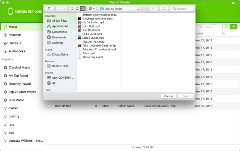 Navigate to the folder where your songs are, select them and click Open. Now, your music from Mac will be transferred to your iPhone. This may take a while depending on how many songs you're transferring.