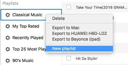 Tip 3: To create or delete a playlist on your iPhone library, simply hover the mouse over that playlist, from right-click context menu, select Create or Delete option.