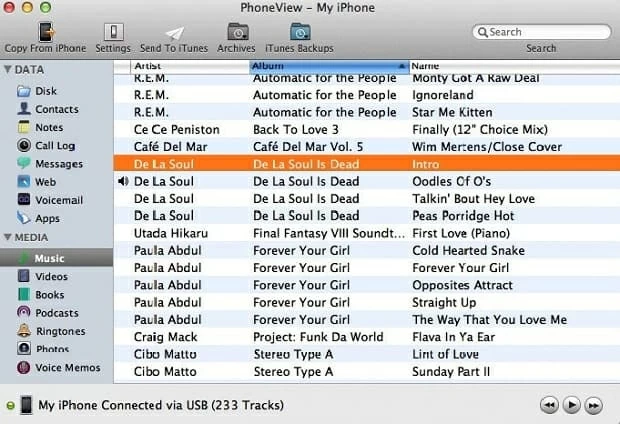 PhoneView is designed to be used as a means of extract all sorts of data files to and from iPhone, including the songs. It's also designed for Mac users only. Here's how to use it: