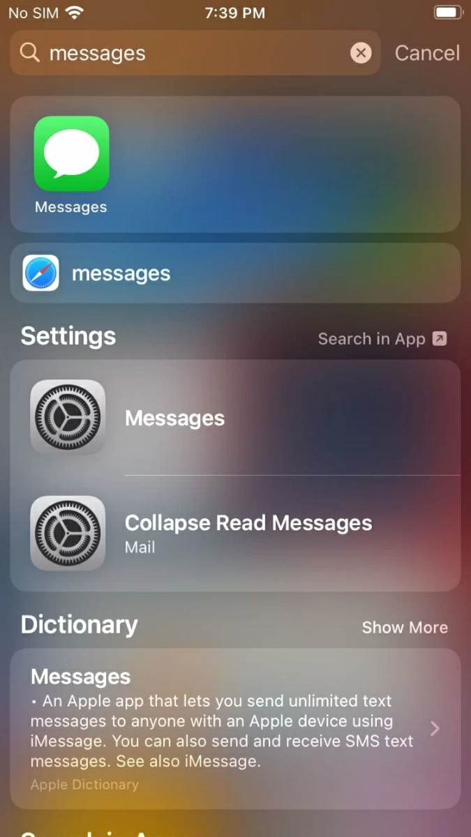 If the reset of home screen layout doesn't work for restoring the deleted Messages icon on iPhone, just stick to either App Library or Search screen to search for that.