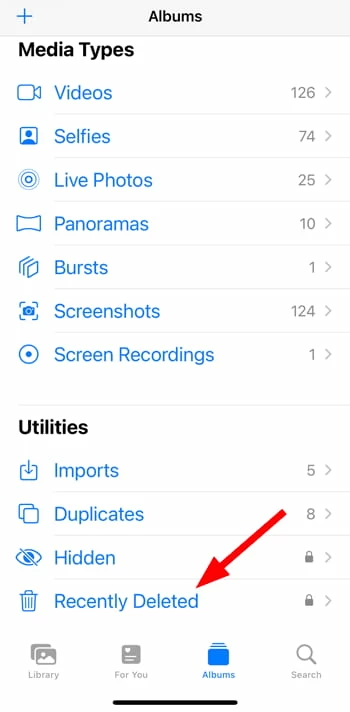 2. Scroll down the screen to the bottom until you see "Utilities," tap "Recently Deleted."