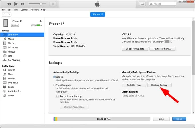 Make sure you have an iTunes backup created before losing your iMessages. Here's how to recover deleted iPhone 14 iMessages from iTunes backup without data overwriting: