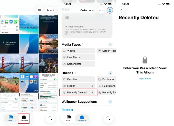 If you deleted photos within the last 30 days: check Recently Deleted inside Photos first — this is almost always the quickest recovery route.