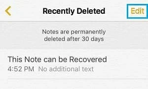 3. Choose "Recently Deleted" to see your deleted notes list.