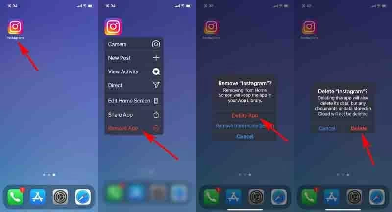 3. Uninstall the faulty app. Some iPhone users reported that the screen doesn't work or respond properly only when running one specific app. If this is your case, remove the malfunctioning app. On your iPhone's Home screen, touch and hold the app that makes the screen unresponsive. In the resulting menu, choose Remove App. To confirm, tap Delete App, then select Delete.