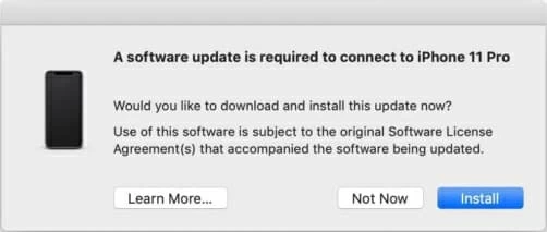 A dialog will appear asking if you want to download and install this update now. Simply hit Install button to move on. Enter your passcode and then your computer will install the most recent version of iOS firmware into your iPhone. This may take a while. When it's done, your device will boot up automatically and the unresponsive display issue should get fixed.