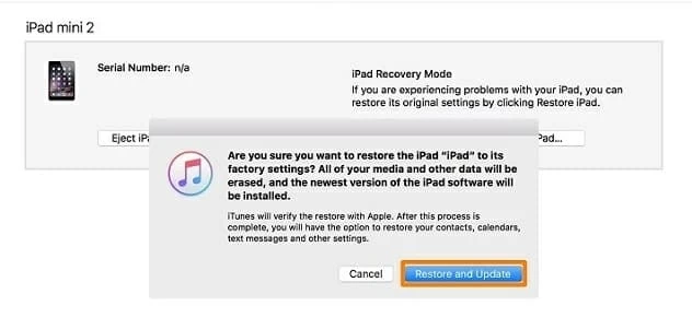 When you find your iPad is in recovery mode and won't restore or update, the first way you should take is put your iPad in recovery mode and set it up again. Yes, this might sound silly, but it works in many cases. You can get more details here: If you can't update or restore your iPhone, iPad, or iPod touch.