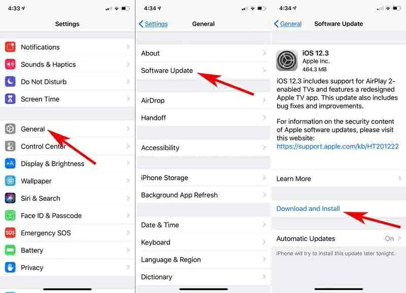 Go to Settings > General > Software Update, if there's an update available, tap on Download and Install. You can turn on Automatic Updates to update your iPhone 12 automatically.