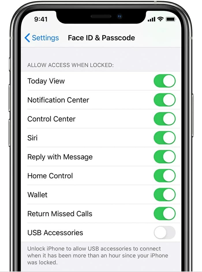 Especially, if your iPhone X/ XS (Max) stops charging only when the screen goes locked, adjust the lockout tweak to get it rectified. After the device boots up, go to Settings > Face ID & Passcode, and turn on USB Accessories under Allow Access When Locked.