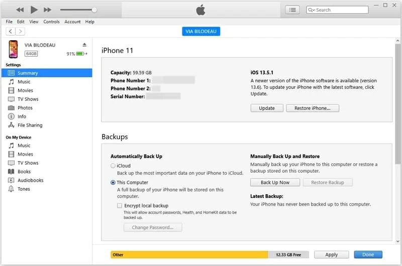 Option 2: Back Up Data to iTunes to Reset iPhone without Loss