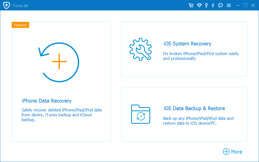 To start with, open the utility. In the startup window, click "More tools", then choose "iOS Data Backup & Restore" tab on the next screen.