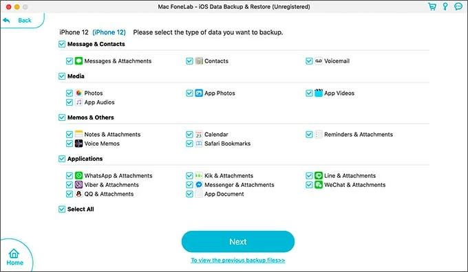 When the syncing is over, you can click "Back" at the upper left corner, then hit "To view the previous backup files" at the bottom to preview your synced iPhone notes on the Mac.